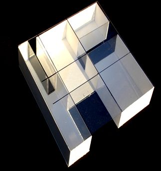 El espacio interior se articula y distribuye principalmente a través de los patios; tales patios engendran un espacio vacío con una forma compuesta por rectángulos que se asemeja a una cruz. Por otro lado, los patios sirven como límite en las diversas zonas debido a la ausencia de tabiques interiores que proporciona una gran fluidez espacial.
